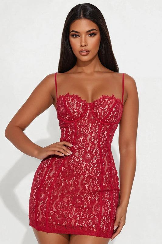 All In Love Lace Mini Dress - Red