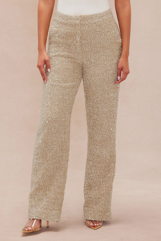 Demi Embellished Tweed Pant - Taupe
