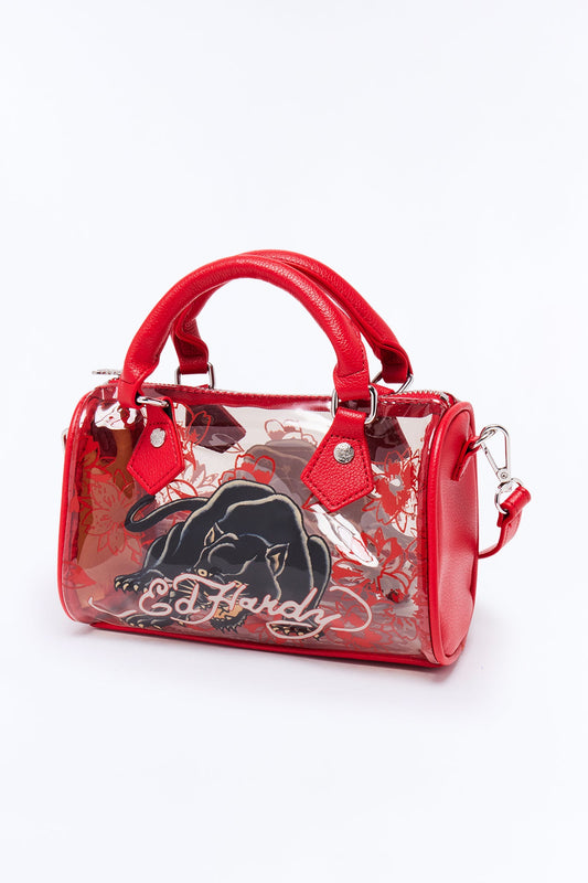 Ed Hardy Panther Clear Satchel Bag - Red/combo