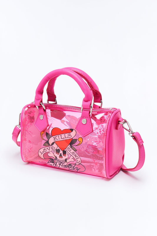Ed Hardy Love Kills Clear Satchel Bag - Pink/combo