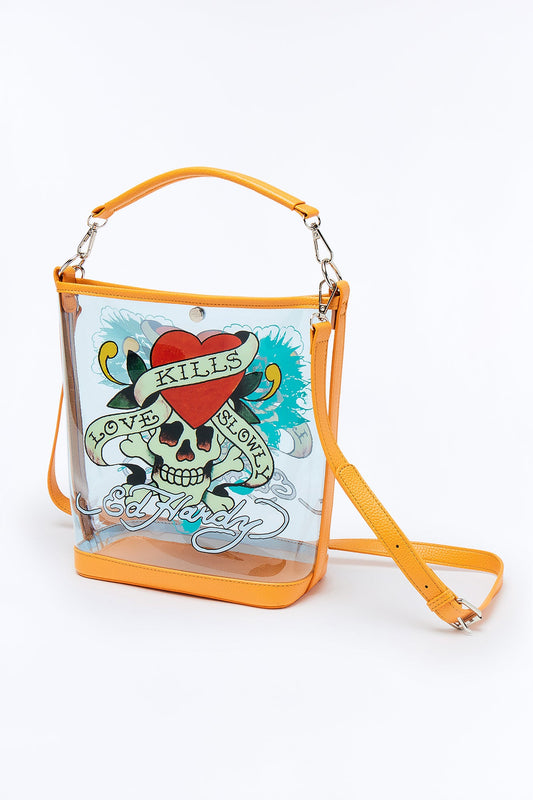 Ed Hardy Faithfully Yours Clear Bucket Bag - Pink/combo