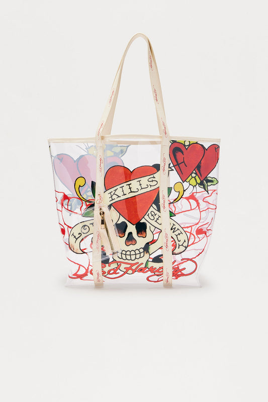 Ed Hardy Love Still Kills Clear Tote Bag - White/combo