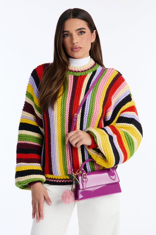 Shiny Little Secret Faux Patent Leather Satchel Bag - Plum