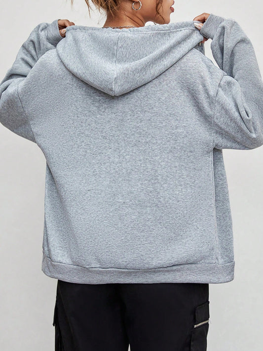Solid Color Zip-Up Raglan Drawstring Lined Hoodie, Long Sleeve Top