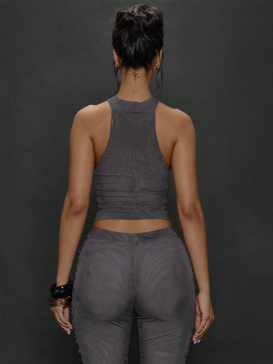Women's Sexy Cropped Camisole Tank Top With Diamond And Ribbed Design