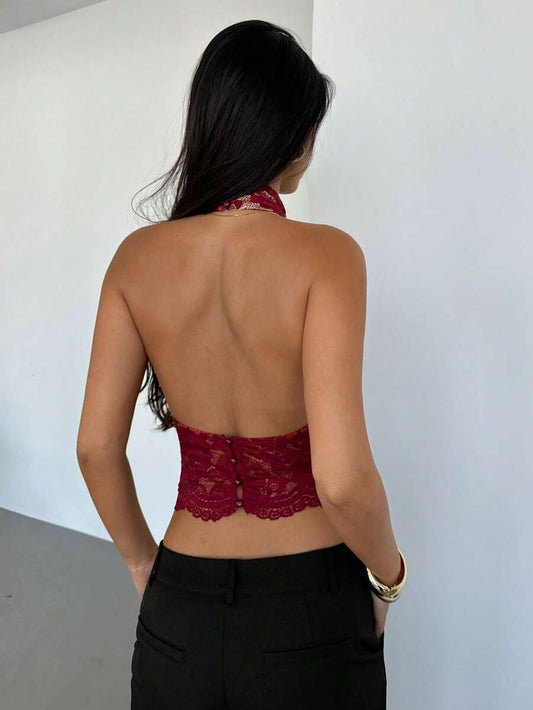 Aloruh Women's Sexy Backless Halter Neck Blouse, Elegant For Party, Commute And Vacation, Summer