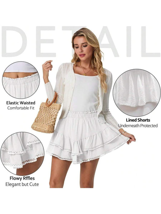 Boho Shorts Women High Waisted Ruffle Tiered Flowy Skirts With Shorts Underneath Western Skorts