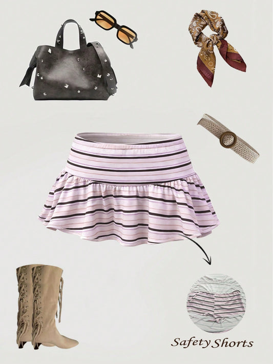 Rina Fox Women's Striped Mini Skirt, Retro Y2K Style, Cute