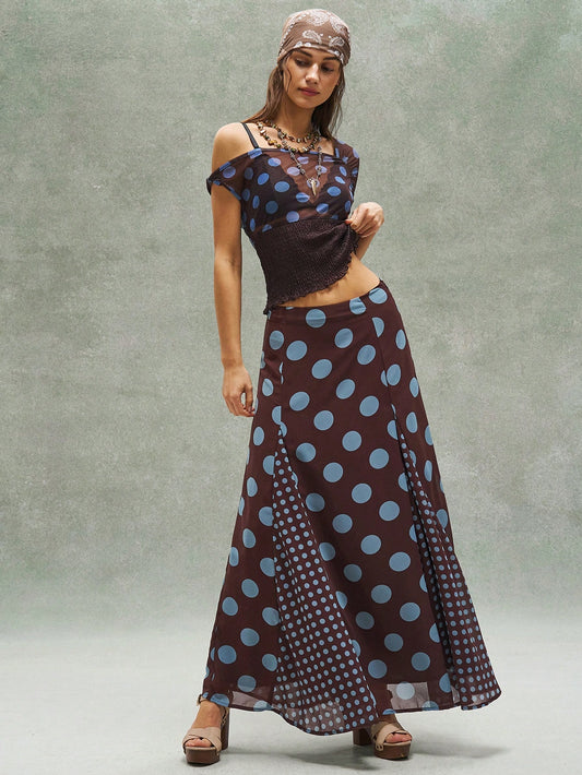 Bohemela Women's Spring/Summer Vacation Casual Bohemian Music Festival Western Party Woven Polka Dot Pattern Patchwork Extra Long Skirt, Elegant Women's Beach Skirt, Wedding Guest Skirt, Beach Outfits For Women, Fasching Women Costume, Valentine's Day Ou