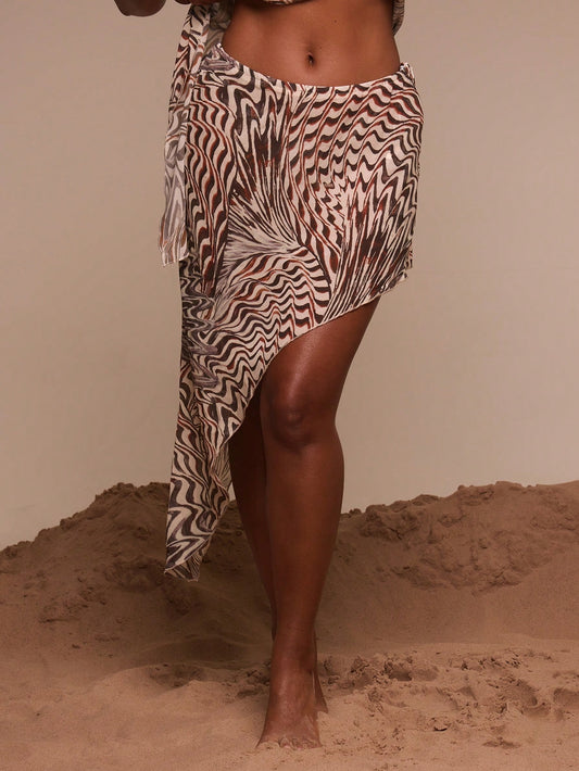 Musera Resort Asymmetric Low Waist Floaty Midi Skirt Cover Up Swim Vacation Holiday Summer Travel Beachwear Terra Sol