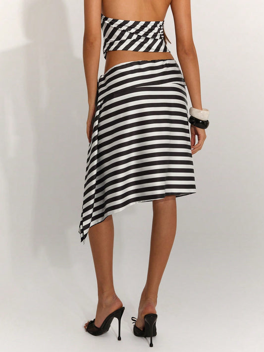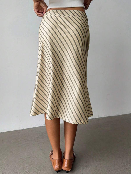 BAE Women's Summer Commuter Fashion Asymmetrical Striped Midi Skirt