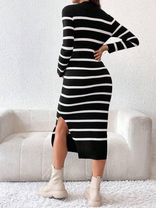 Maternity Striped Print Casual Long Sleeve Sweater Dress, For Winter