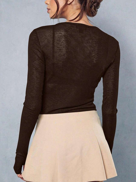Y2K Elastic Sheer Long Sleeve Crew Neck Fitted T-Shirt Top