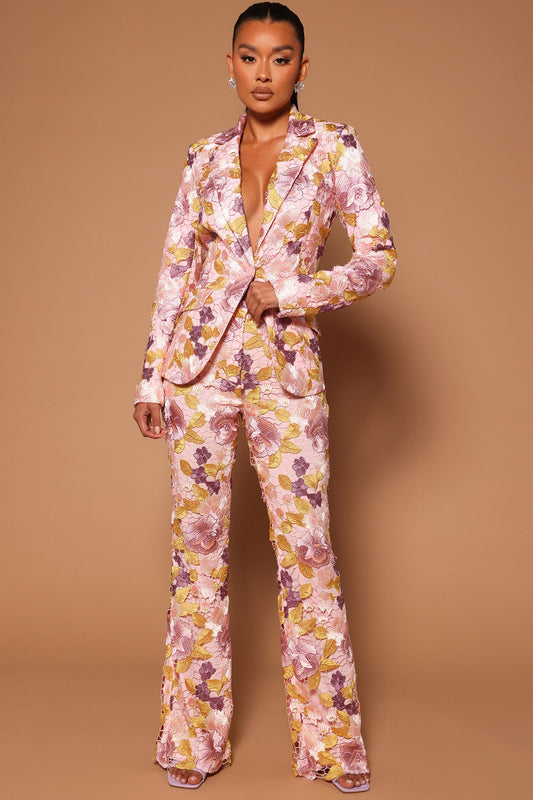Bianca Jacquard Blazer Pant Set - Black/Gold