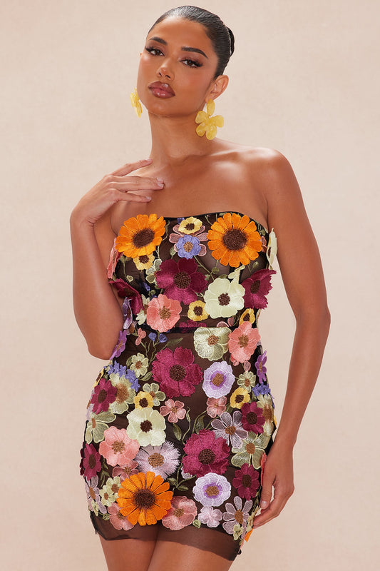 Mellie Floral Embroidered Mini Dress - Black/combo