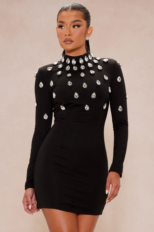 Aria Embellished Mini Dress - Black