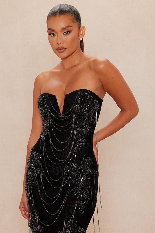 Dripping In Diamonds Embellished Maxi Dress - Black