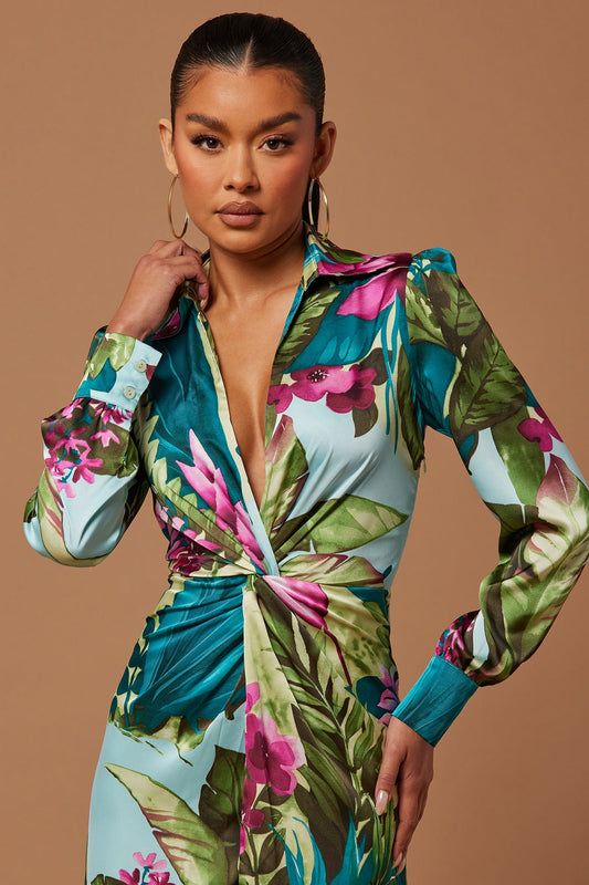 Kyoto Satin Maxi Dress - Green