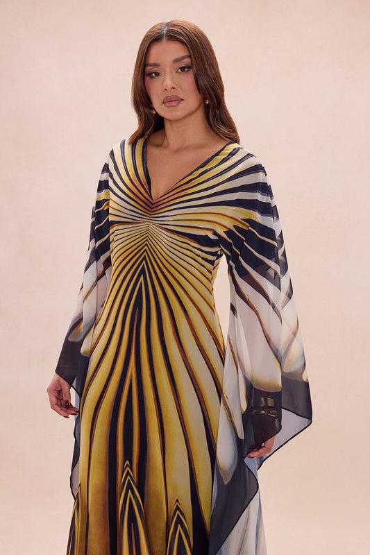 Soleil Bell Sleeve Chiffon Maxi Dress - Yellow/combo