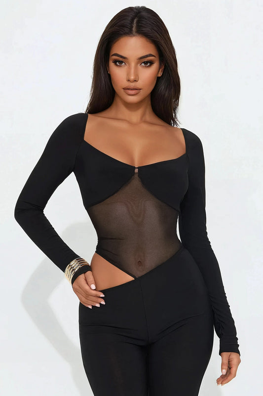 Striya Sheer Long Sleeve Cut Out Jumpsuit - Black