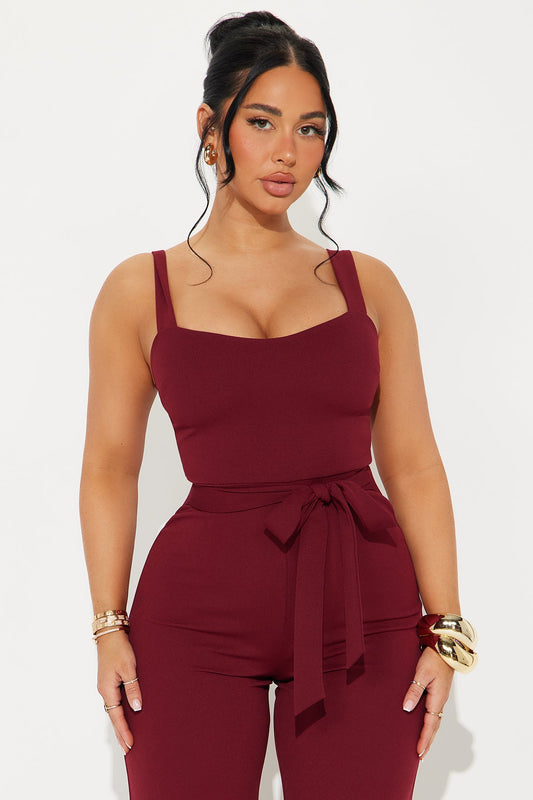 Theya Crepe Wide Leg Jumpsuit - Wine