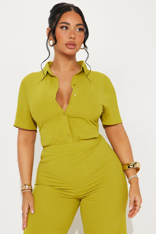 Makenzie Short Sleeve Jumpsuit - Chartreuse