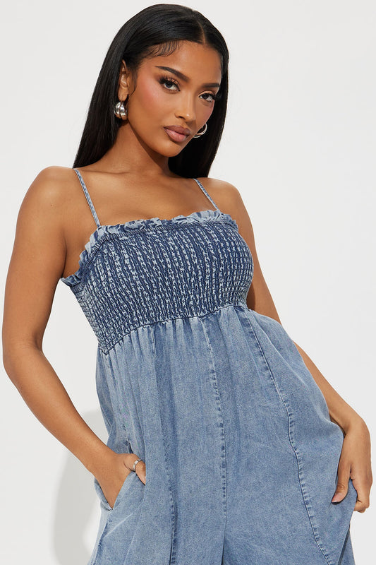 Meet Me In The Desert Denim Jumpsuit - Tan