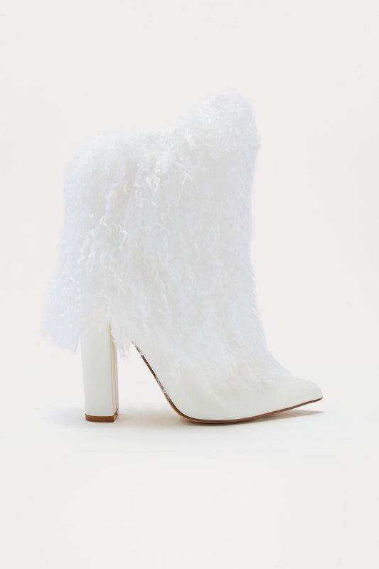 Falls Faux Fur Overlay Booties - White