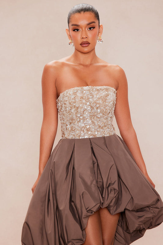 Kahrissa Bubble Embellished Gown - Mocha