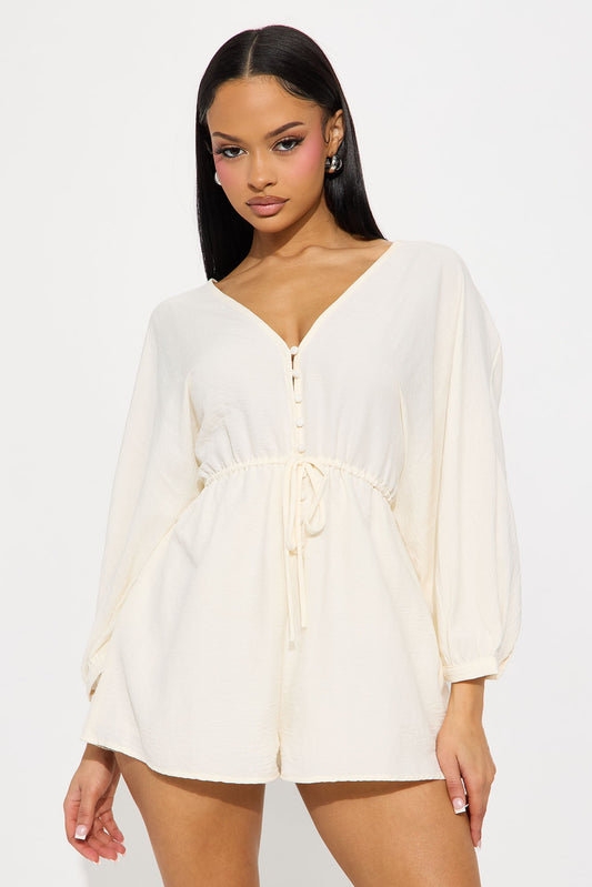 Hot Intentions Cowl Neck Lace Romper - Cream