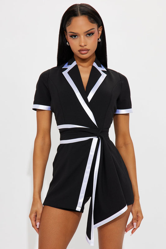 Wrapped And Ready Bandage Bow Romper - Black/White