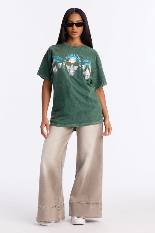 Dennis Rodman Washed 3 Heads Tee - Hunter Green