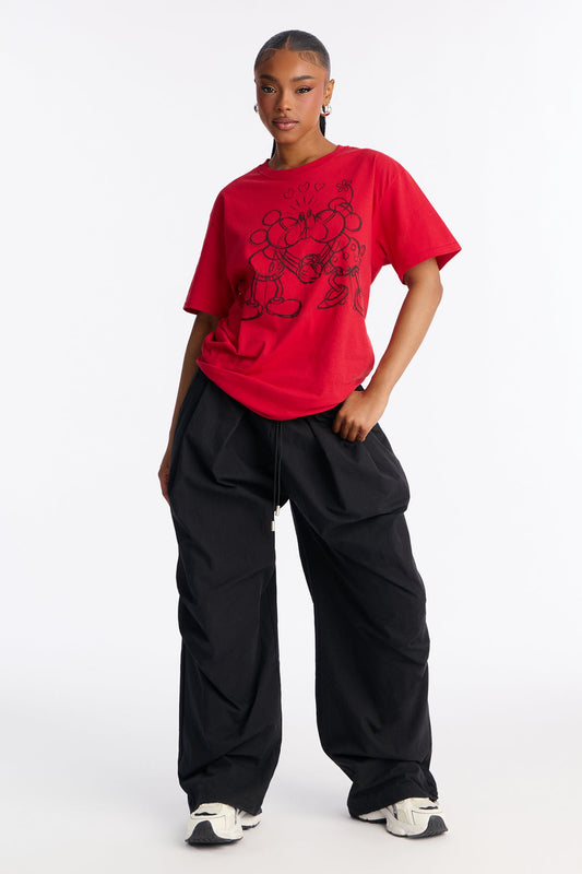 Mickey And Minnie Kissing Sketch Tee - Red