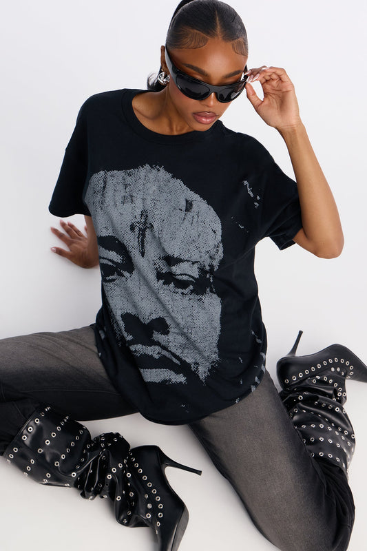 Holy Vision Oversized Rhinestone Tee - Black