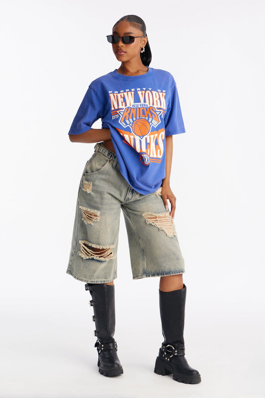 NBA NY Knicks Washed Oversized Tee - Royal