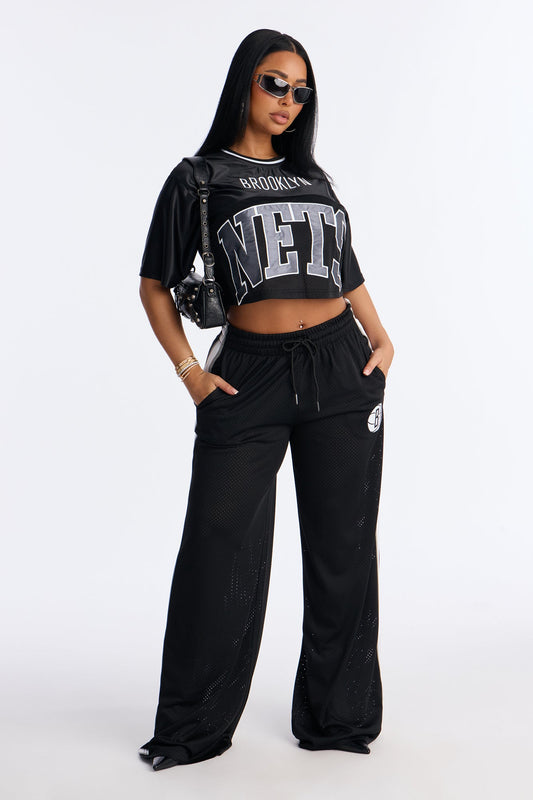 NBA Brooklyn Nets Cropped Tee - Black