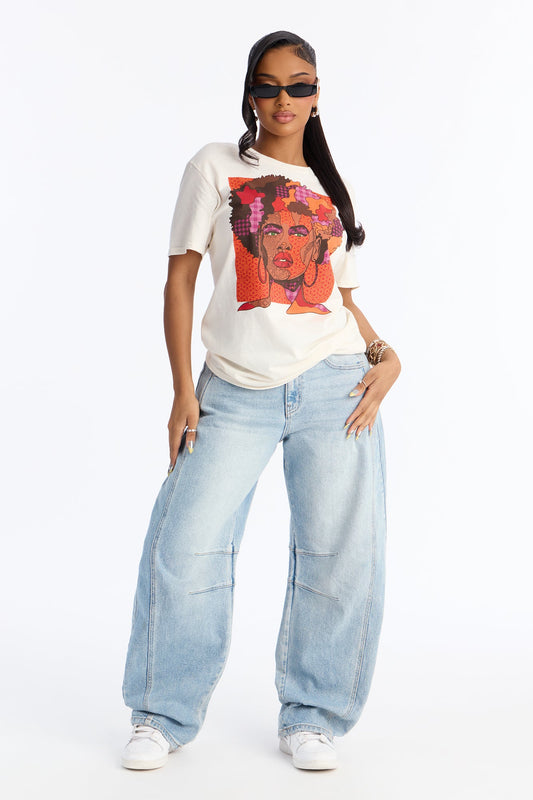 Powerful Woman With Hoops Tee - Cream