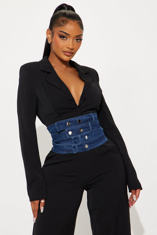 Deal Closer Blazer Wide Leg Jumpsuit - Charcoal