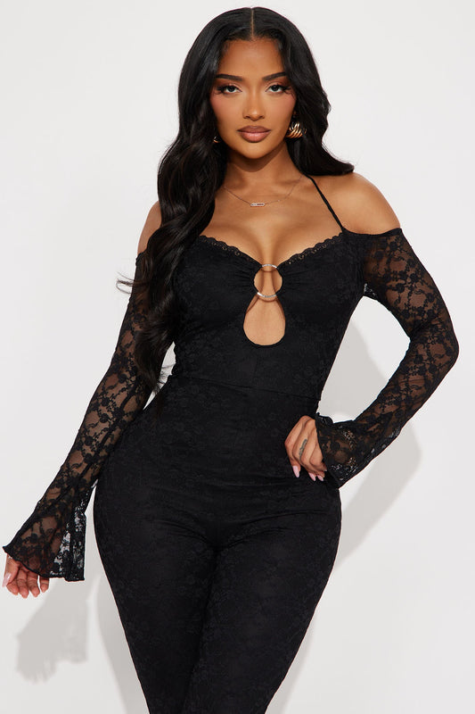 Vibe With Me Lace Jumpsuit - Black