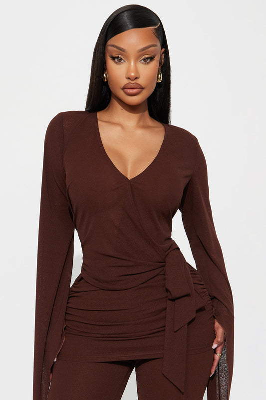Ace Of Hearts Long Sleeve Flare Leg Jumpsuit - Brown