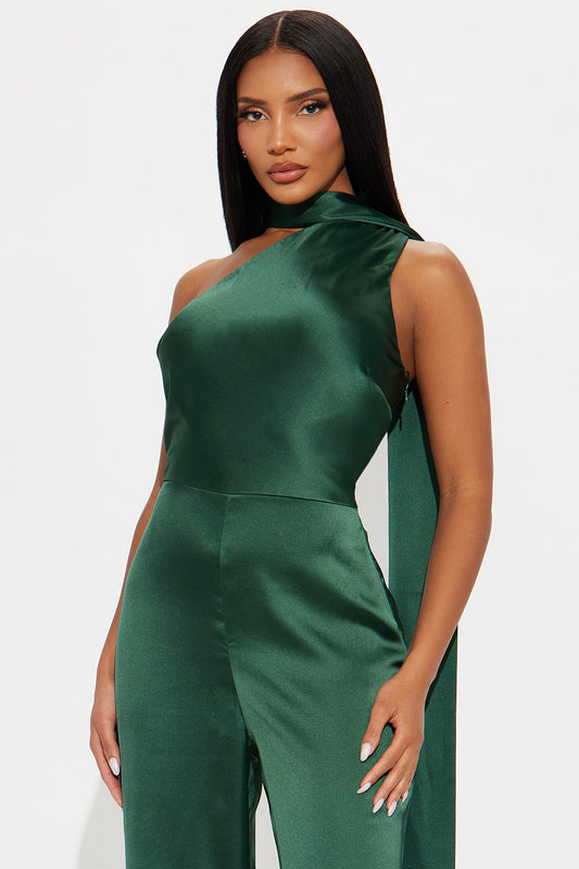 Citlali Satin Halter Jumpsuit - Hunter