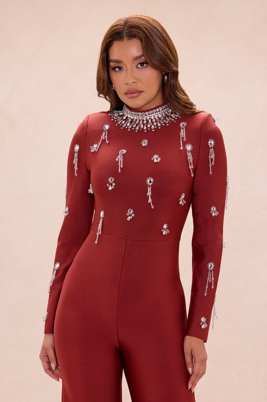 Tatum Rhinestone Bandage Jumpsuit - Copper