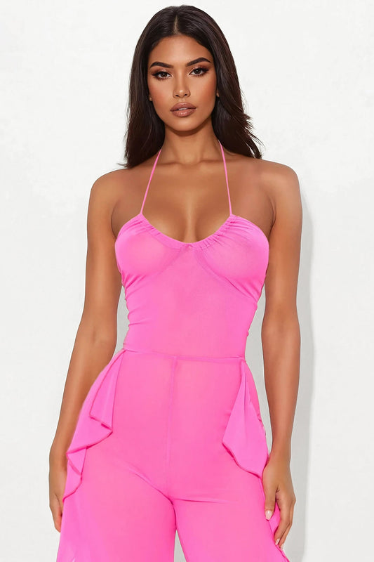 Electric Feeling Mesh Jumpsuit - Pink