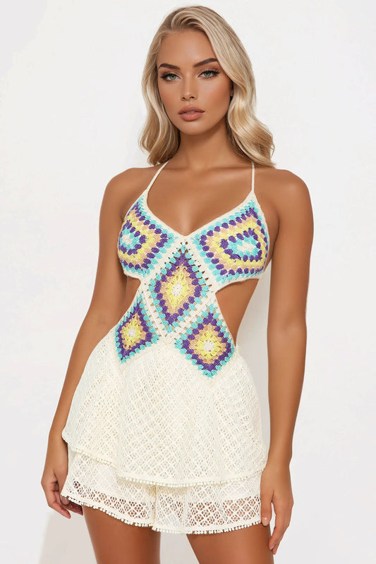 Lost In Italy Crochet Romper - Cream/combo