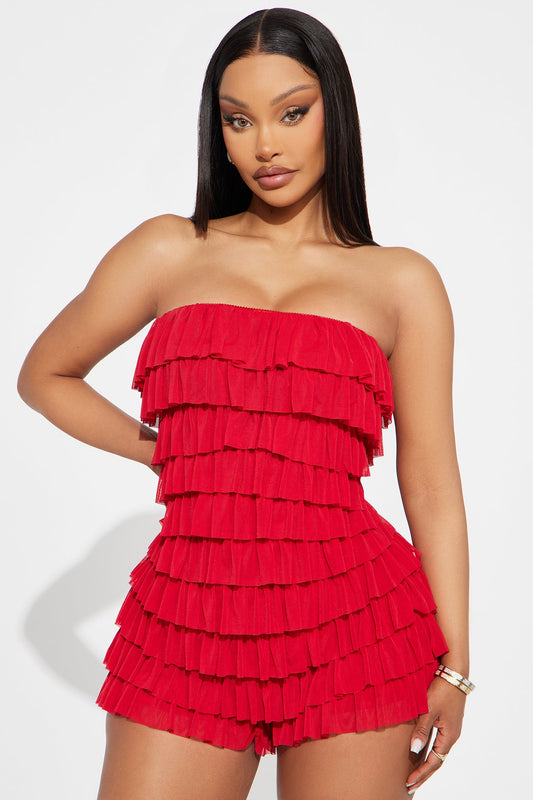 Good Girl Gone Rogue Mesh Romper - Red