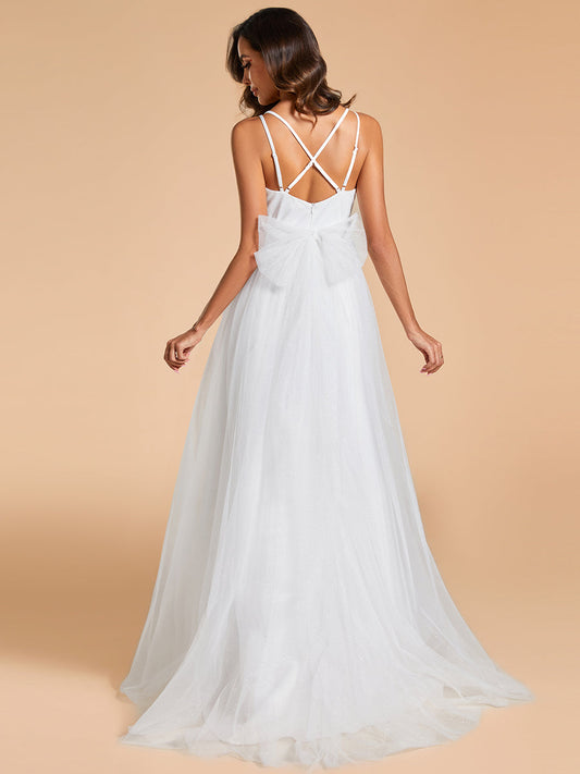 V Neck A Line Sleeveless Backless Floor-Length Wedding Dress