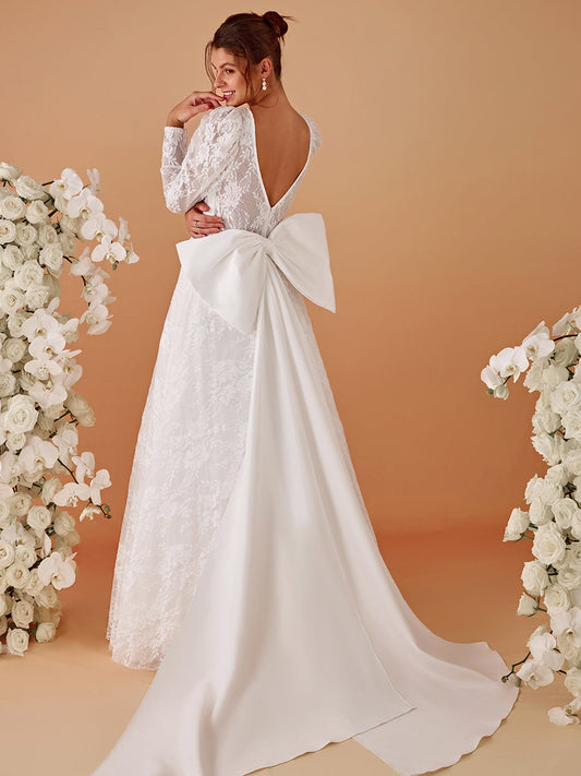 Exquisite Round Neck Leg-Of-Mutton Lace Wedding Dresses