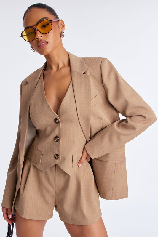 Rachel Pinstripe Blazer Romper - Taupe