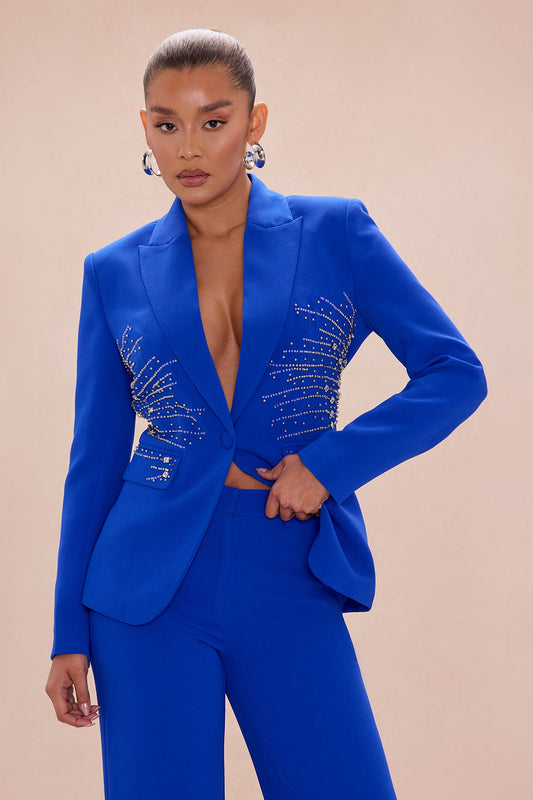 Riley Embellished Blazer Pant Set - Royal