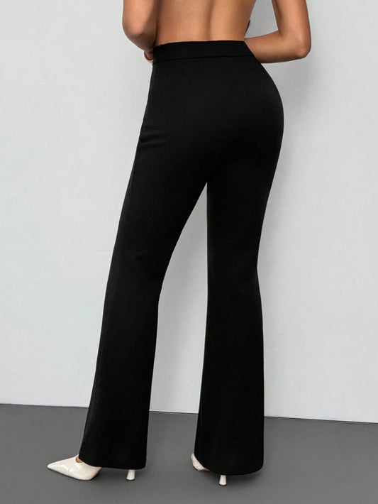Hauture Old Money Sexy Business Casual Office Solid Flare Leg Pants For Women Elegant High Waist, Chic Professional Trousers, Vintage-Inspired Workwear Style